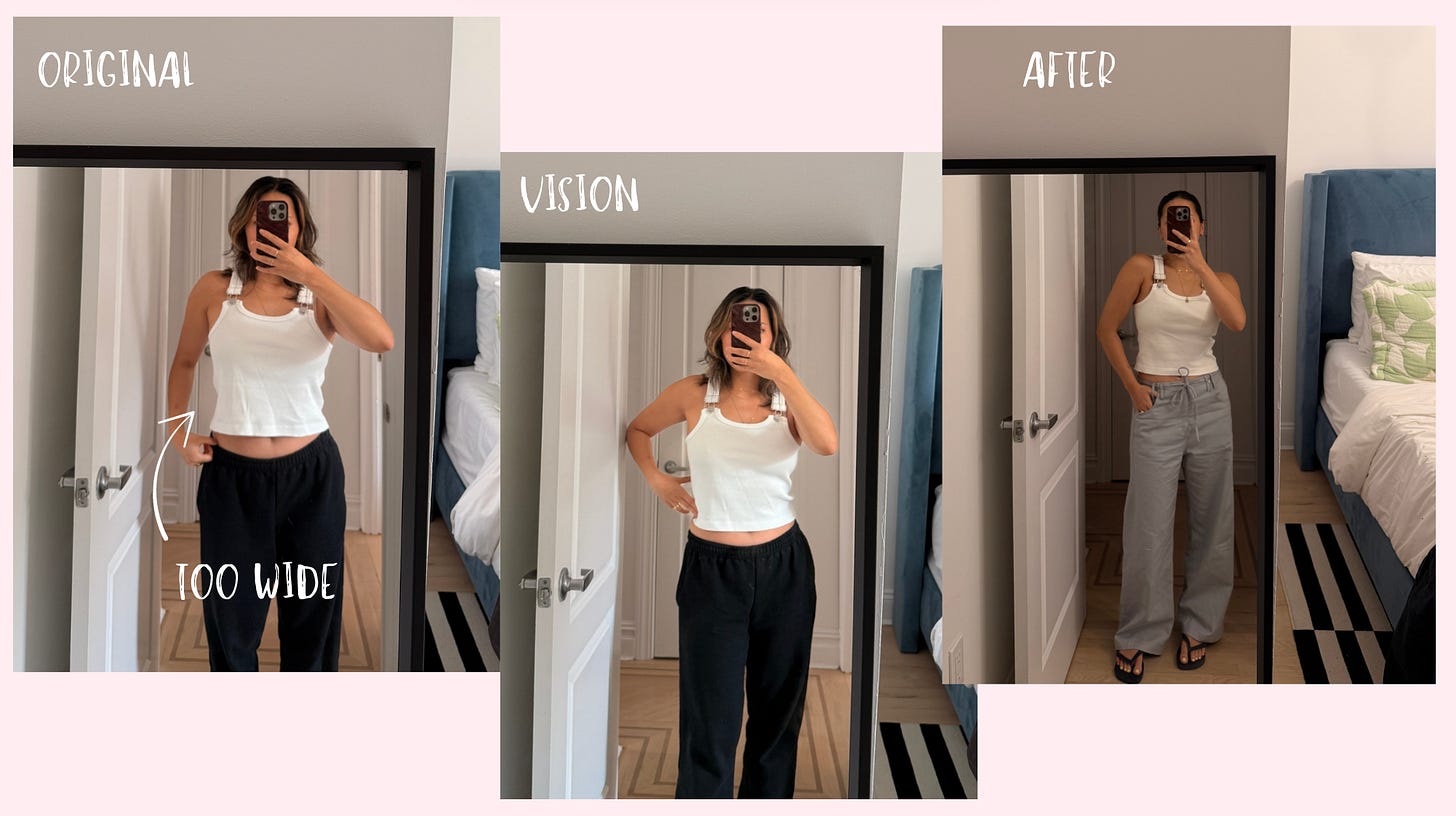 Of course, the clothes also have to fit. This week, I challenged myself to go through some of the pieces I don’t reach for enough but also refuse to donate, and to take them to the tailor. I picked items that clearly captured my style words but still were sitting in my closet more than they should be. They had survived multiple apartment moves and purges so I wanted to turn them into pieces I would wear every day. The process made me remember why I was so excited to buy them in the first place and made me love them even more. Let’s get into it!
